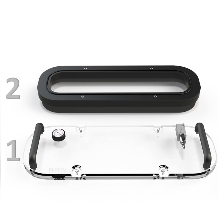 Notre boîte à vide peut fonctionner soit par compression grâce au système venturi, soit par aspiration grâce à notre pompe à vide optionnelle spécialement adaptée.