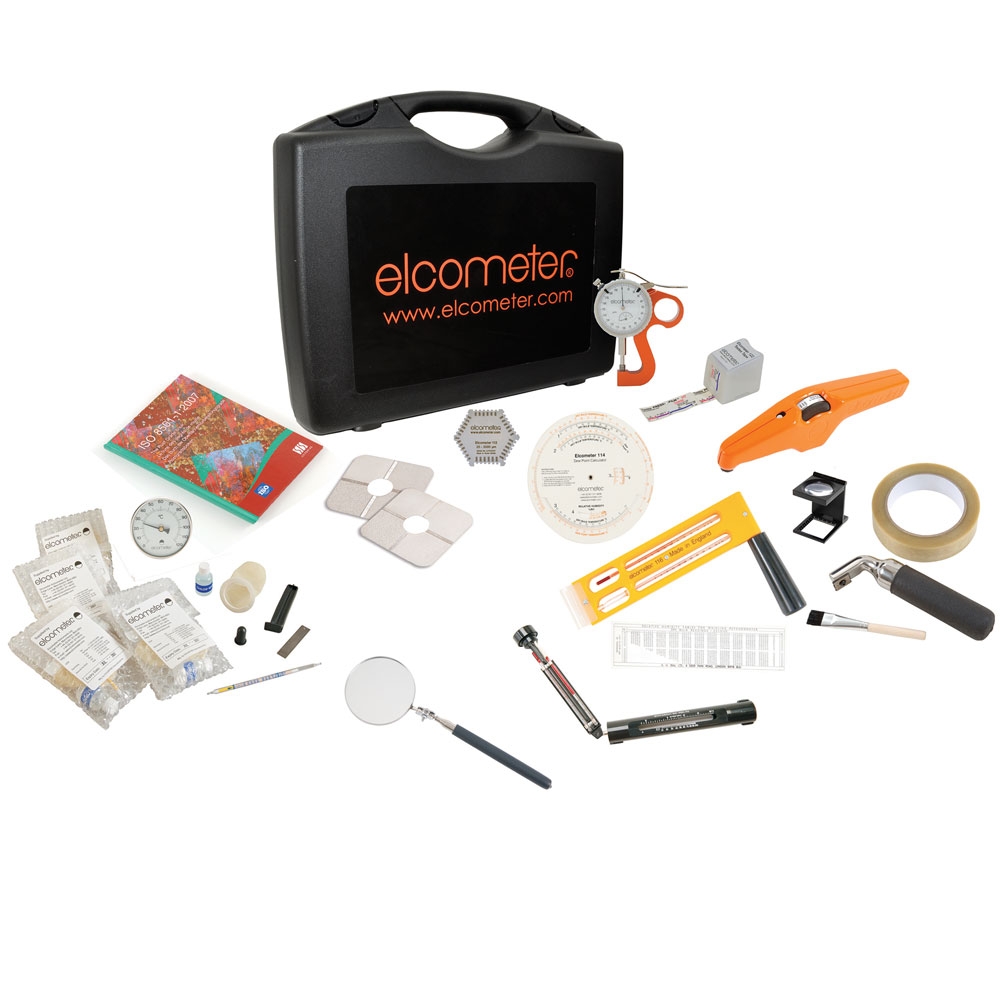 Le kit fournit tous les outils nécessaires à l’inspection sur site d’un revêtement, et notamment le profil de surface, point de rosée, humidité relative, épaisseur de film sec & humide et test d’adhérence au ruban adhésif.