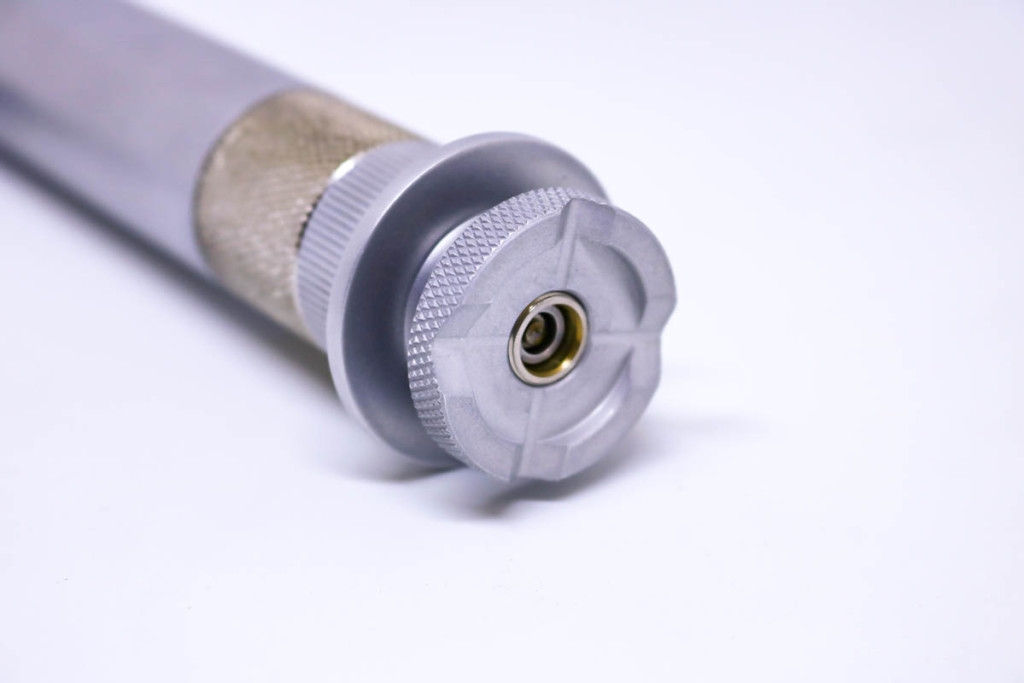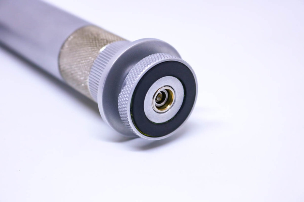 La sonde du testeur de dureté UCI NOVOTEST T-U3 a une buse spéciale, qui assure la perpendicularité de la pénétration du pénétrateur dans la surface de l'objet testé et minimise la probabilité d'erreur de l'opérateur. De plus, une rondelle de buse spéciale peut être installée au verso pour fonctionner avec des surfaces de rayon de différents diamètres. De la même manière qu'il peut être retiré de la sonde, dans ce cas le nez fin de la sonde peut être installé dans les rainures ou dans les points étroits du produit, où il est nécessaire de mesurer la dureté.